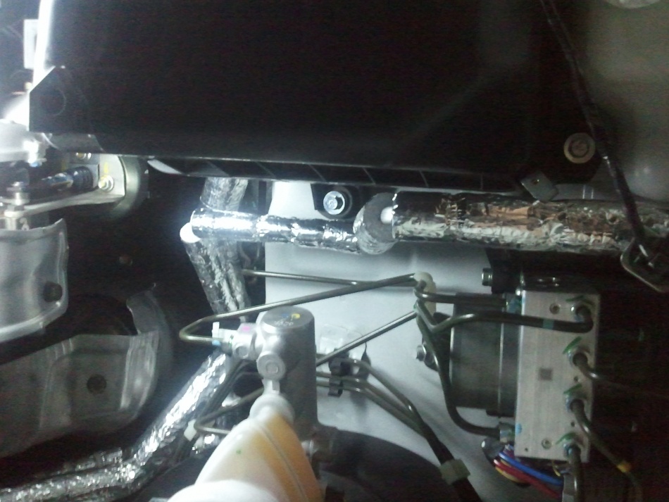 ไปเมียงๆมองแล้วครับ เกิดความสงสัยครับ เห้นมีท่อ2เส้น เส้นใหญ่เขาทำท่อยาวอ้อมใต้เครื่องด้านหน้าไปหาคอมเพรสเซอร์ที่อยู่ฝั่งแบตเตอรี่ ถ้าเดินท่อไปหลังเครื่องระดับเดียวกับที่ท่ออกมา เดินไปหาข้างๆแบตรี่ก็จะได้ระยะที่สั้นกว่าเยอะมากครับ