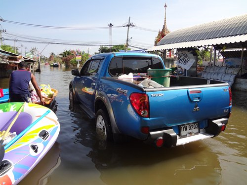 และลึกไปถึงเกือบสะพานแรก หลังจากนั้นแห้งวิ่งได้สบาย รถเล็กจะผ่านจุดที่ลึกสุดยากหน่อยครับ จอดแถวบางใหญ่ซิตี้ นั่งรถรับจ้างไปก็ได้ มีหลายสาย