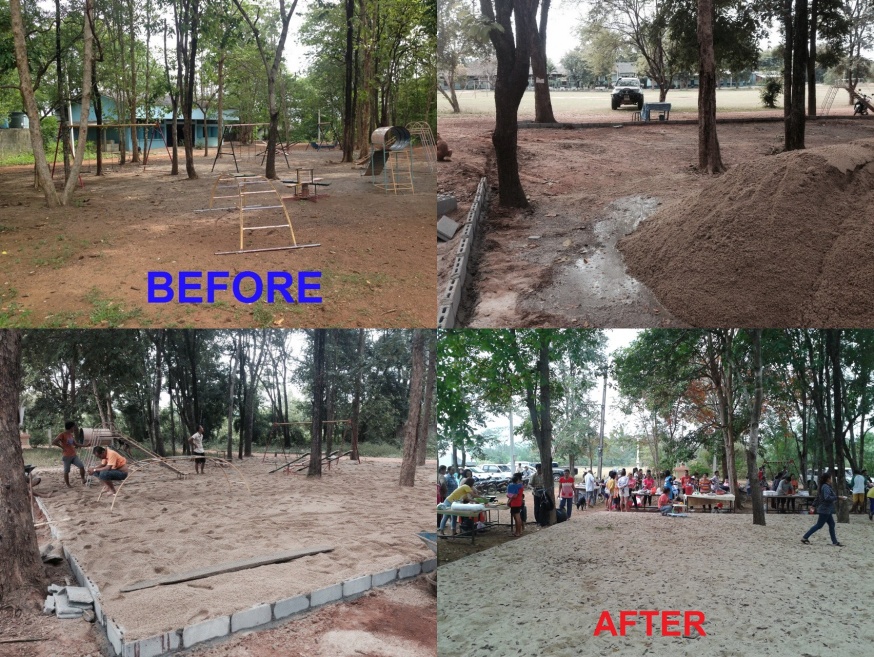 ปรับปรุงสนามเด็กเล่น+มอบอุปกรณ์กีฬา+เลี้ยงอาหารกลางวันเด็กนักเรียน