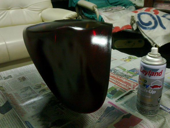 เงาแว๊บสมใจแล้ว ก็เคลือบกันอีกรอบด้วยยาเคลือบเงา ก็จะได้ผลงานที่สุดภูมิใจแบบนี้ ถ้าวันไหนเราถ้าเบื่อ ก็แค่ซื้อสเปรย์ลบสีมาพ่น แล้วเช็ดออก โคมเราก็กลับสู่สภาพเดิมครับ ซนแบบไม่เสียของคร๊าบ