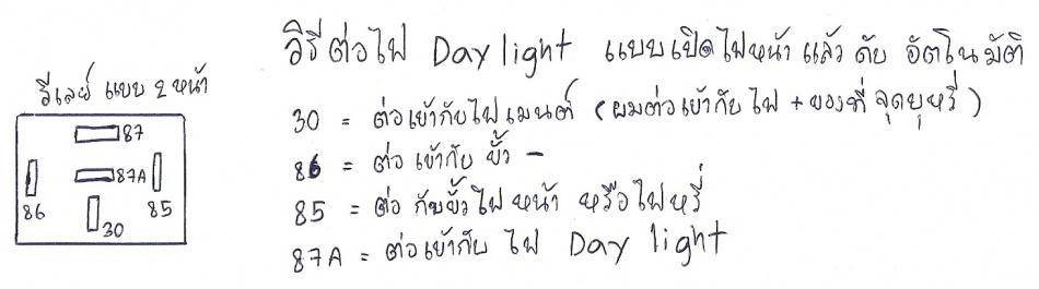 ผมต้องการ ปิดสวิทย์กุญแจ daylight ติด เปิดไฟหรี่ daylight ดับ >>>>และต้องการใช้สวิทย์เปิด-ปิด ตามต้องการด้วย ต่ออย่างไรครับ