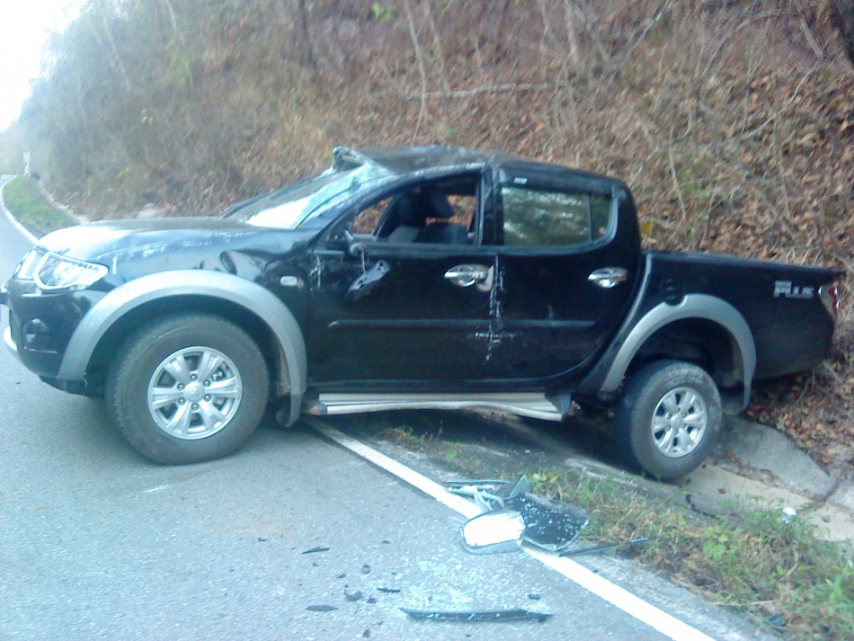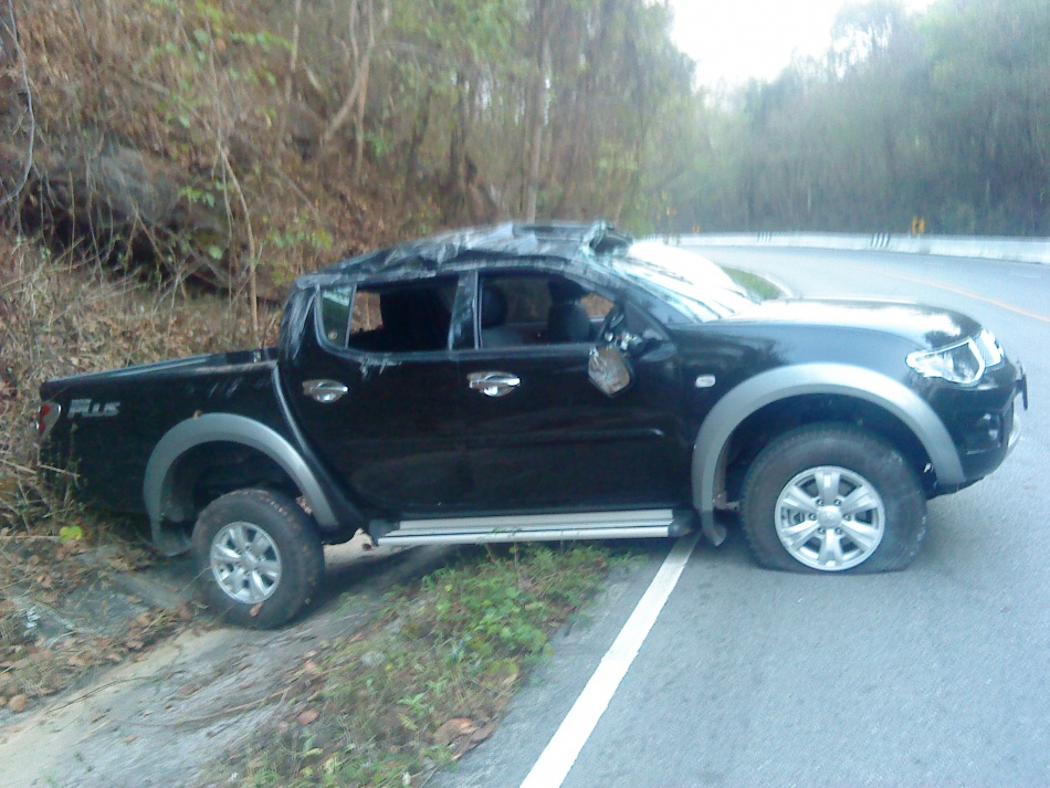 ตำรวจแจ้งว่า ตรงบริเวณนั้น ก่อนหน้ามีน้ำมันหกค่ะ ประกอบกับฝนตกปรอย ๆ และหลังจากช่วงขณะที่รถหนูเกิดอุบัติเหตุแล้ว ก็มีอีก 2 คัน ที่แฉลบลื่น เหมือนหนูค่ะ แต่เค้าคุมรถให้กลับมาได้ค่ะ แต่ของหนูพอแฉลบลื่น แล้วหนูเบรค มันก็เลยพลิกคว่ำและกลับมาตั้งเหมือนเิดิมค่ะ (มีคนแนะนำว่า อย่าเหยียบเบรค ให้ปล่อยรถและประคองพวงมาลัยไปเรื่อย ๆ) แต่จังหวะนั้น ด้วยความตกใจหนูก็เลยเหยียบเบรคค่ะ เหตุการณ์จึงเป็นเช่นนี้ค่ะ (วันนั้น เห็นตำรวจเค้าแจ้งให้เจ้าหน้าที่นำหินคลุกไปโรยแล้วค่ะ เพื่อป้องกันอุบัติเหตุ...สบายใจได้ค่ะ)