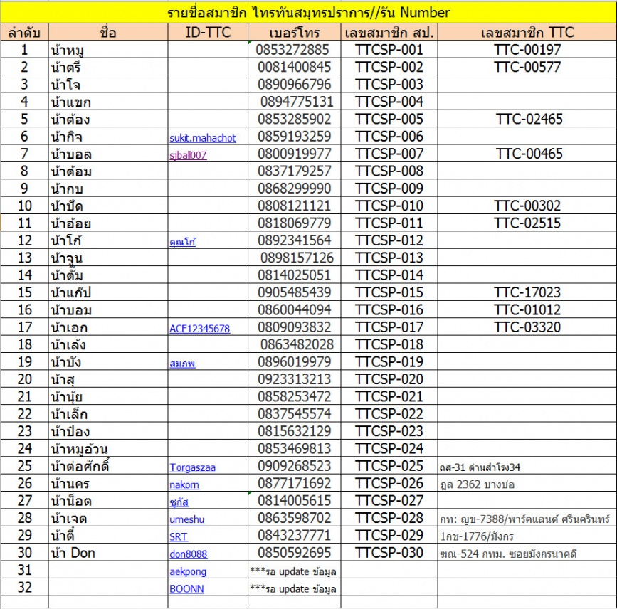 ขออนุญาติ Update และเรียงเลขใหม่นะคะ จะได้ รัน เลขต่อเนื่อง ถ้ามีสมาชิกใหม่เข้ามาได้ รันต่อได้เลย