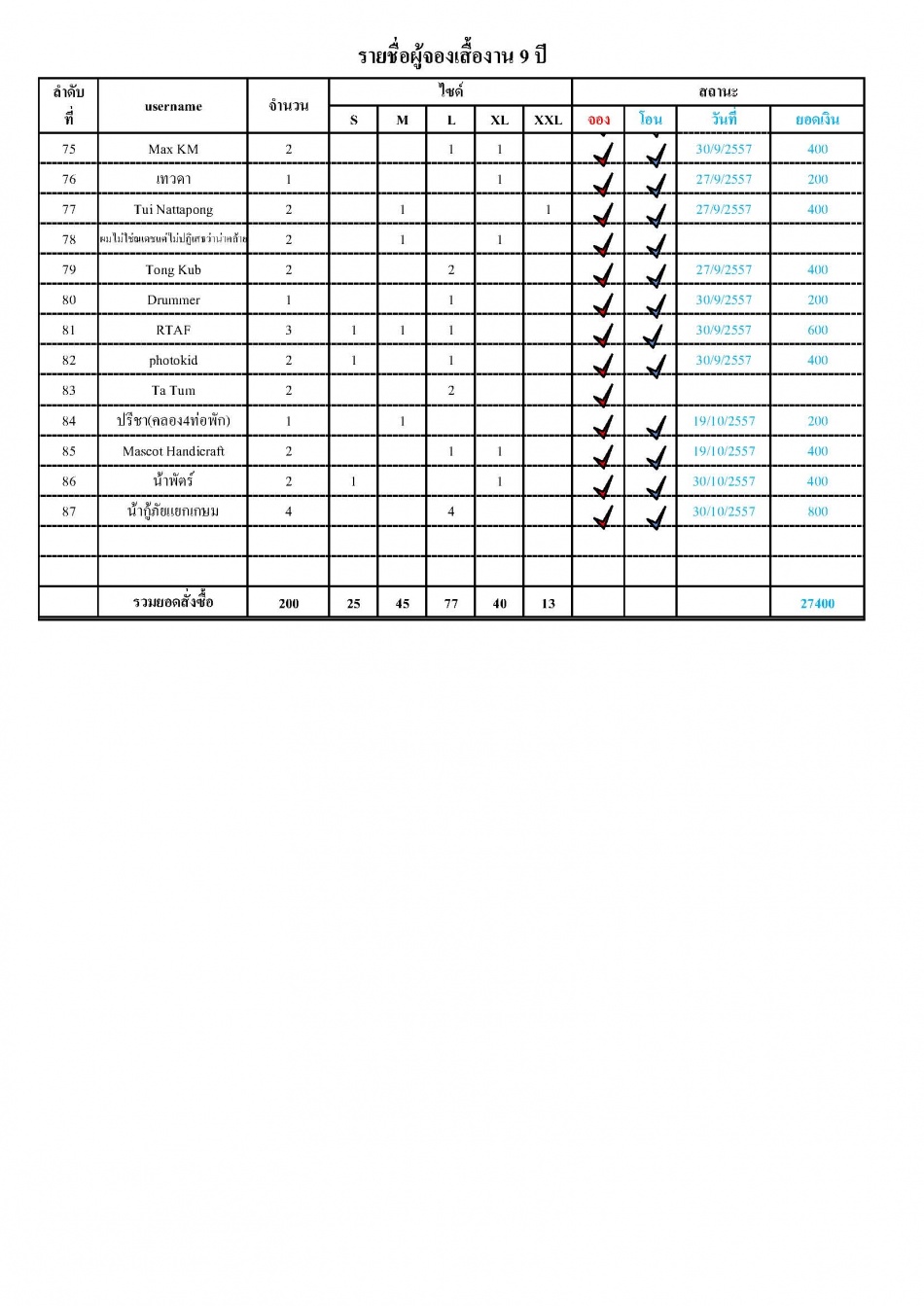 UPDATE ตารางการสั่งจองเสื้อครับ รบกวนน้าๆที่สั่งเสื้อไว้ตรวจสอบความถูกต้องของไซด์และจำนวนด้วยครับ