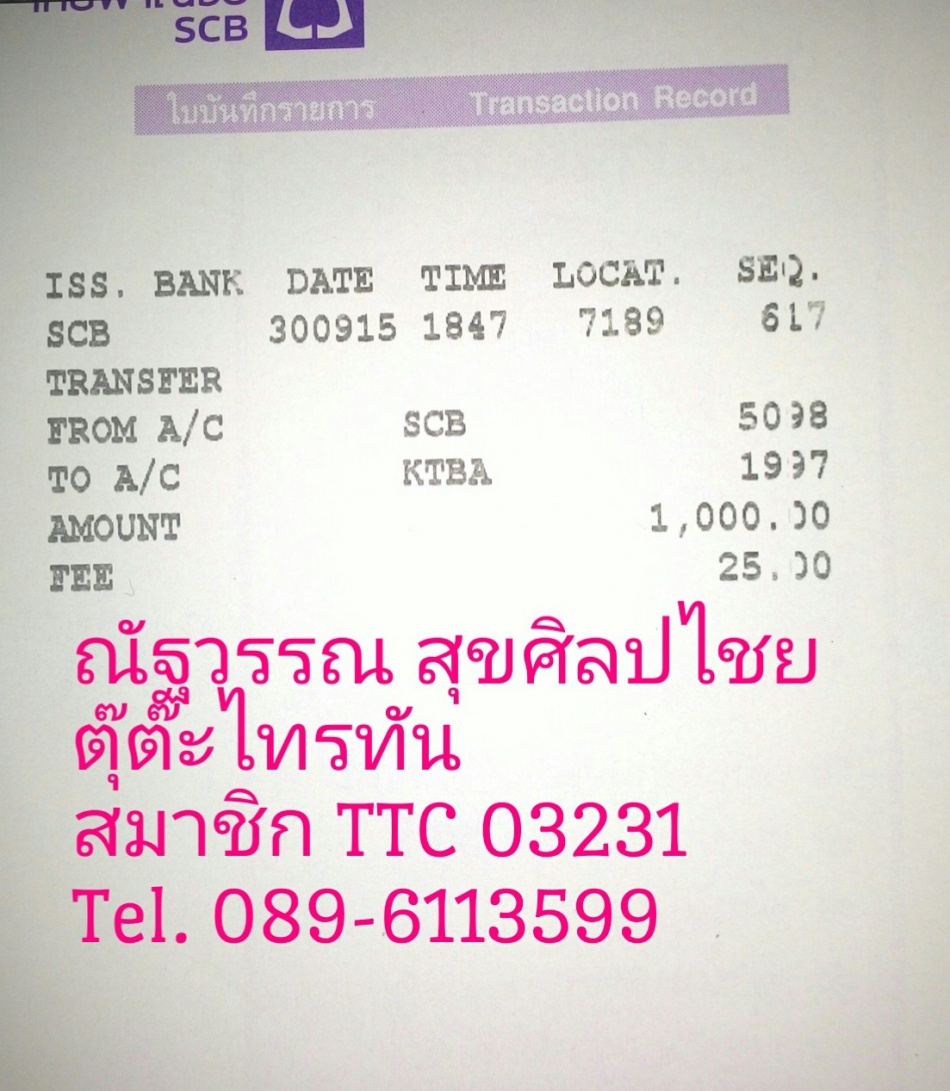 รบกวนสมาชิกเก็บหลักฐานการโอนเงินไว้ตรวจสอบ กรณีเกิดปัญหาใดๆก็ตาม