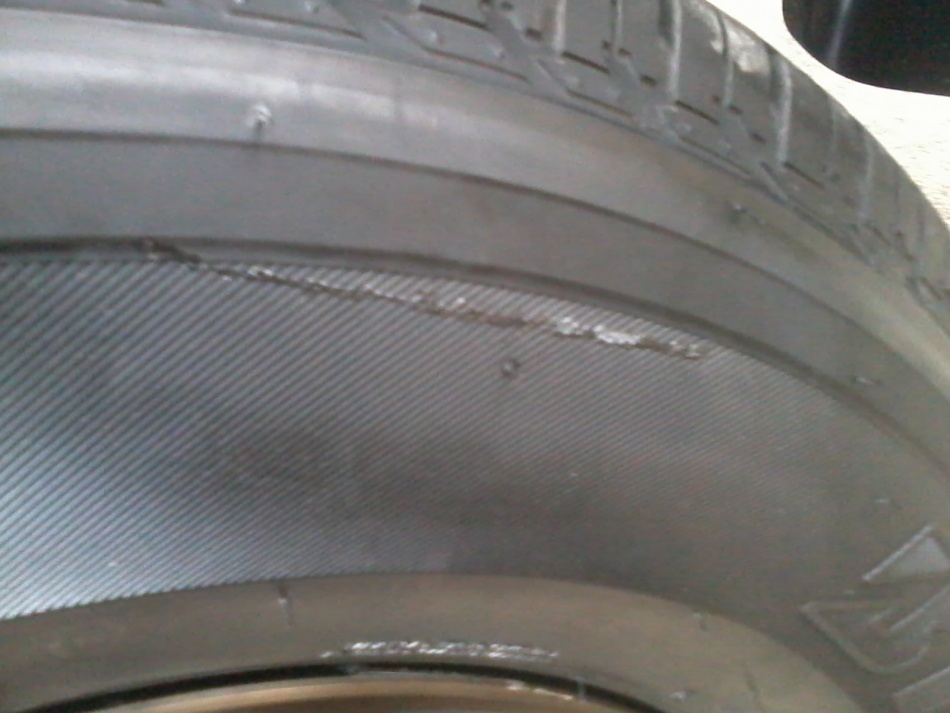 ของผมเคยเป็น ขับเก๋งไปซื้อไม้ แล้วเด็กร้านมันโบกรถ ให้เข้าไปจอดข้างไหน พอดี ฐานเสา มันมีเหล็กแผ่นยื่นออกมา ไม่เห็น ขูดกับยาง ฉีกประมาณนี้แหละ แต่ไม่ลึกมากถึงลวดข้างใน ใช้กาวตราช้างหยอดเหมือนกันเลย ประมาณว่างก ใช้ไปได้ 6 เดือน ยางแตก เกือบพา แฟน พ่อแม่ ลูก เอาชีวิตไปทิ้ง แต่ยางที่ใช้ เป็น bridgeston รู้สึกว่า รถจะทรงตัวได้อยู่ตอนมันแตก ไม่สบัด แต่รู้เลยว่ายางแตก เพราะรถมันเอียง ขับบดยางไปจนถึงบ้าน ประมาณ 10 โล ก็รู้สึกว่าโชคดีมากที่ไม่เป็นอะไร - ผมว่าเปลี่ยนเถอะ ไม่คุ้มกับชีวิตเราหรอก ปลอดภัยไว้ก่อน เสียตังค์นิดหน่อย ดีกว่าเสียใจภายหลัง