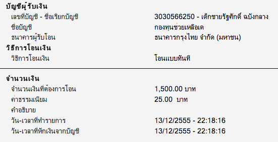 โอนเงินเข้าบัญชีเพื่อสมทบทุนครับ